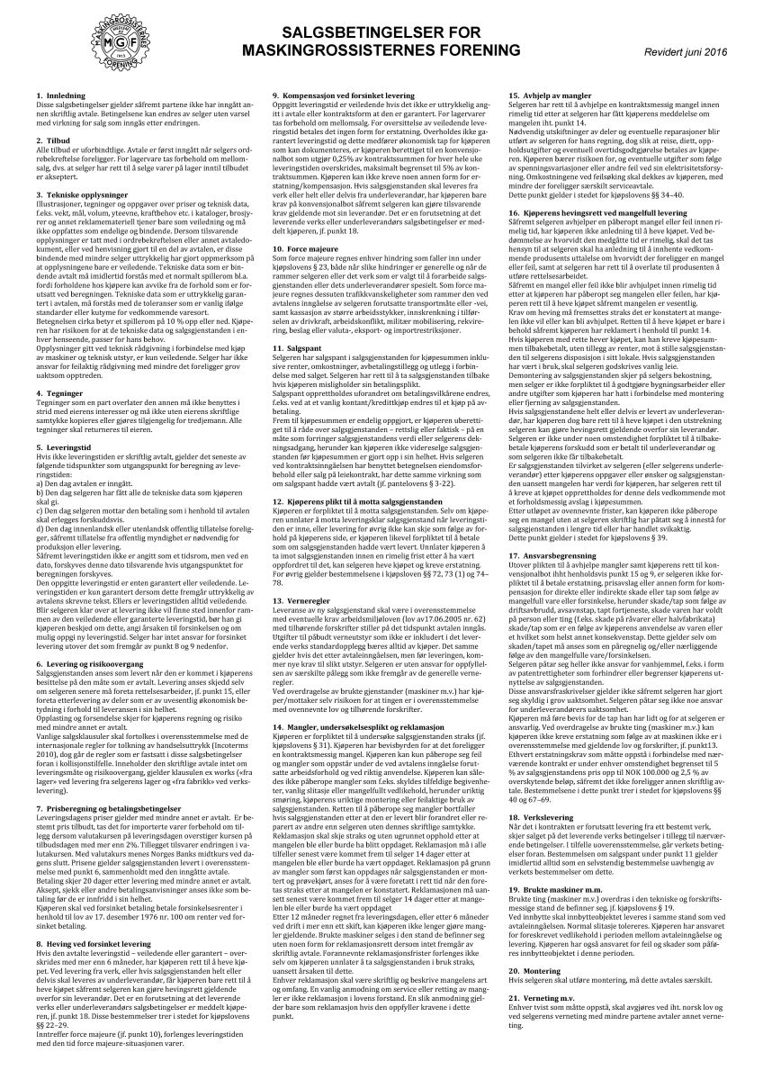 Våre salgsbetingelser: MGF 2016